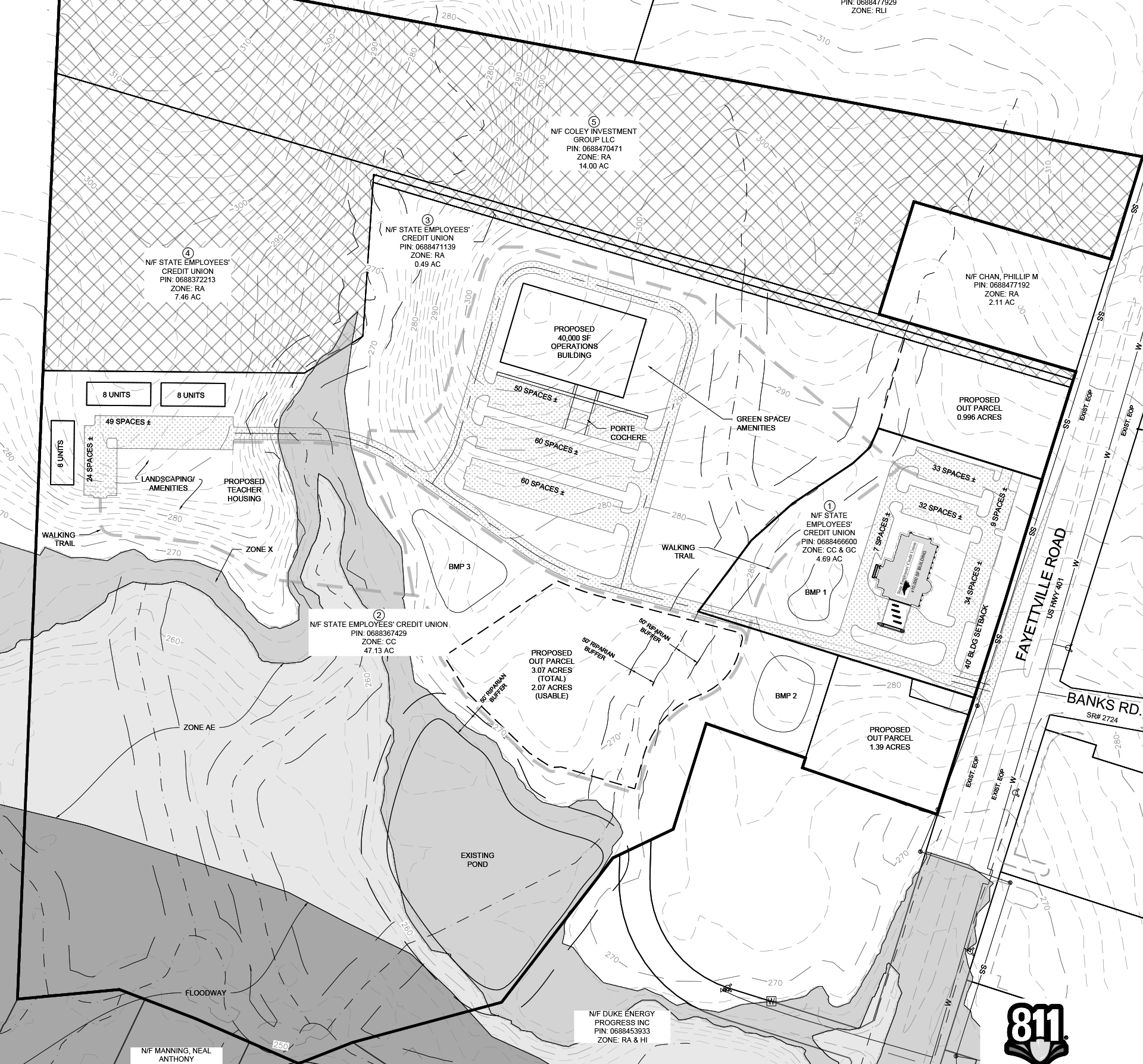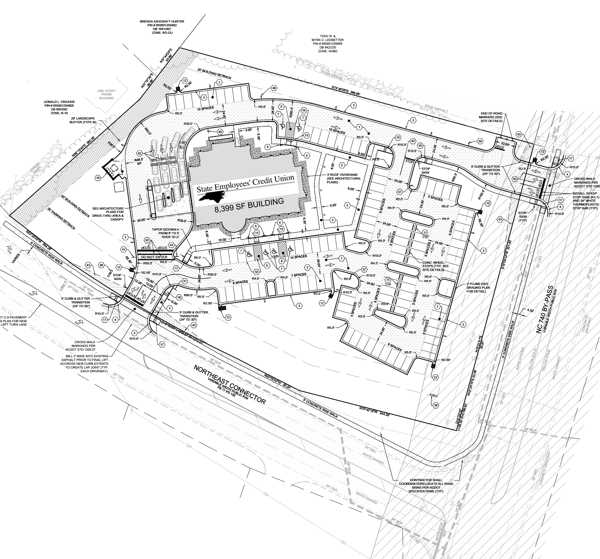 This program for the State Employees’ Credit Union includes tailoring each site to the meet the local municipal codes and fit the individual parcels unique characteristics. Working with Summit Architecture and Civil Engineering disciplines, we have experience across the region working on over 45+ SECU sites in North Carolina that are either in progress or have been completed.